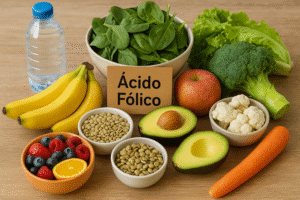 - Ácido fólico: vegetales de hoja verde, cítricos, legumbres.